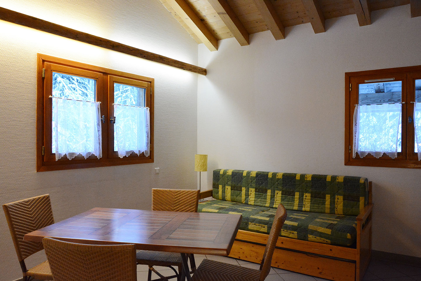 - Les appartements de 4 à 6 places ont une mézanine. Elles abritent les couchages. Pour les autres, la pièce à vivre abrite l’espace couchage et l’espace cuisine – salle à manger.